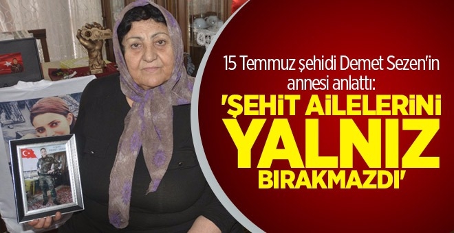 15 Temmuz'u 16'sına bağlayan gece millet sokaklarda, bağırışlar çağırışlar geliyor, herkes eline bayrağı almış sokaklarda. Ben de 'bir takım maç kazanmış, taraftarı onun için kutlama yapıyor' sandım. Hasta olduğumdan ilaç almıştım, sersem gibiydim. Oğlum Ümit ile telefonda görüştüm, 'oğlum nasılsın, ne yapıyorsun' diye. 'Anne, ben Ankara'ya geliyorum' dedi. 'Ne oldu oğlum bir durum mu var, Demet'ime bir şey mi oldu?' dedim, 'anne sorma, gelince konuşuruz' dedi. Demet'i aradım, ulaşamadım. Ümit'i tekrar aradım, 'oğlum, Demet'e ulaşamıyorum' diye. Ümit'i aramışlar, 'kardeşin şehit oldu' diye. Ümit, Hakan'ı arıyor, 'kardeşim şehit olmuş, ben gelene kadar eşini bul' diye. Gece 02.00'de hastanelerde Demet'imi aradım ama bulamadım, 'acaba yavrum yaralı mı?' dedim. 3 gün sonra yavrumu buldum, tabutuna ellerimle koydum, bayrağını çektim.