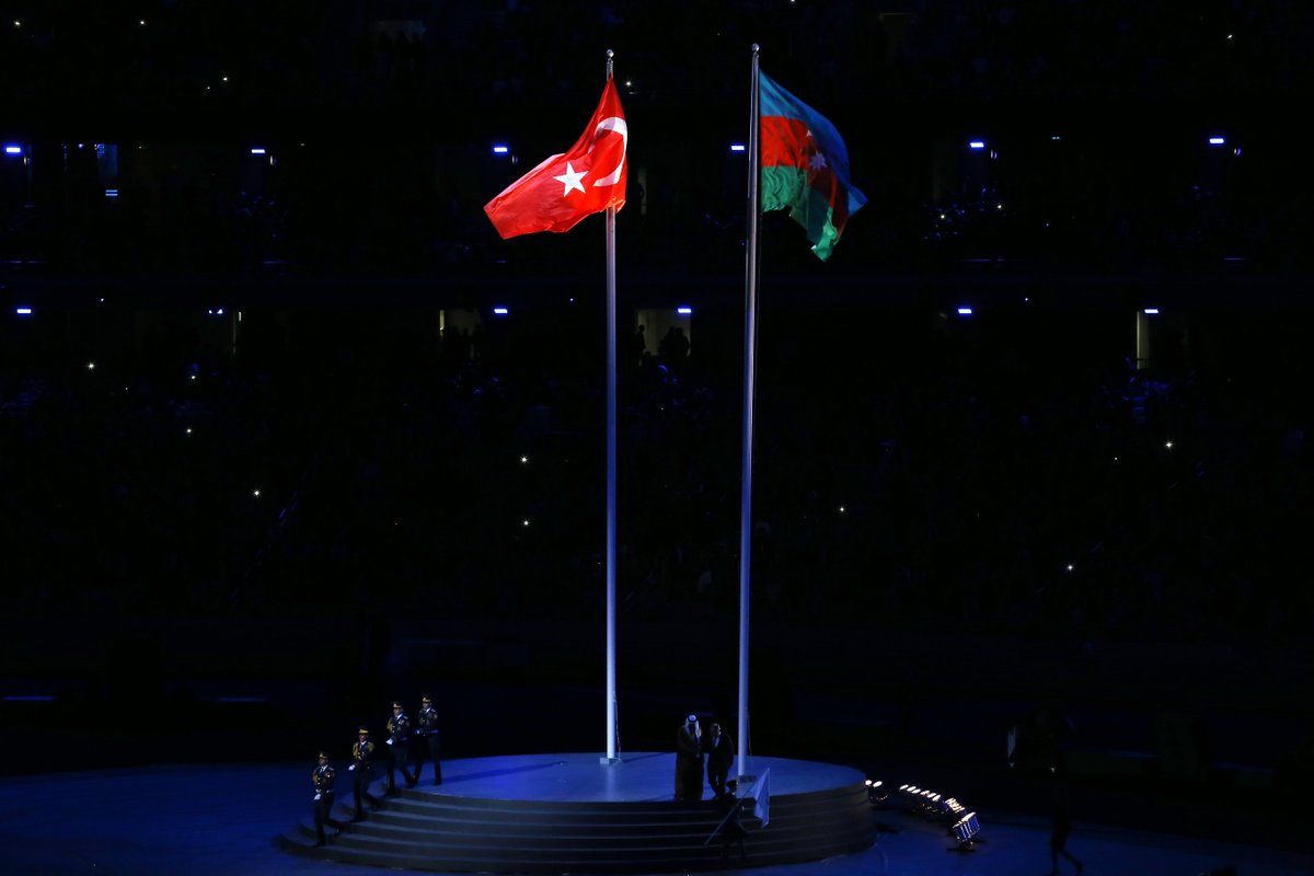 Azerbaycan Milli Marşı'nın okunması ve ülke bayrağının göndere çekilmesi ile devam eden törende, katılımcı ülkelerin bayrakları sporcular eşliğinde sahneye çıkarıldı. Türkiye bayrağını oyunlarda tenis dalında altın madalya kazanan Altuğ Çelikbilek taşıdı. Ardından oyunlarda yarışan tüm sporcuların geçidi gerçekleştirildi.