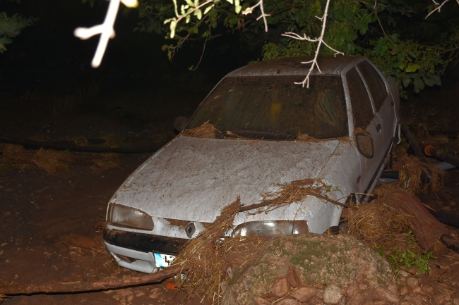 Köyde aniden bastıran yağışın yaklaşık 20 dakika sürdüğünü anlatan Gaffari Ertan da hayvanların sel nedeniyle telef olduğunu, ahırın çöktüğünü, bir otomobilin ise çamura saplanarak zarar gördüğünü kaydetti.