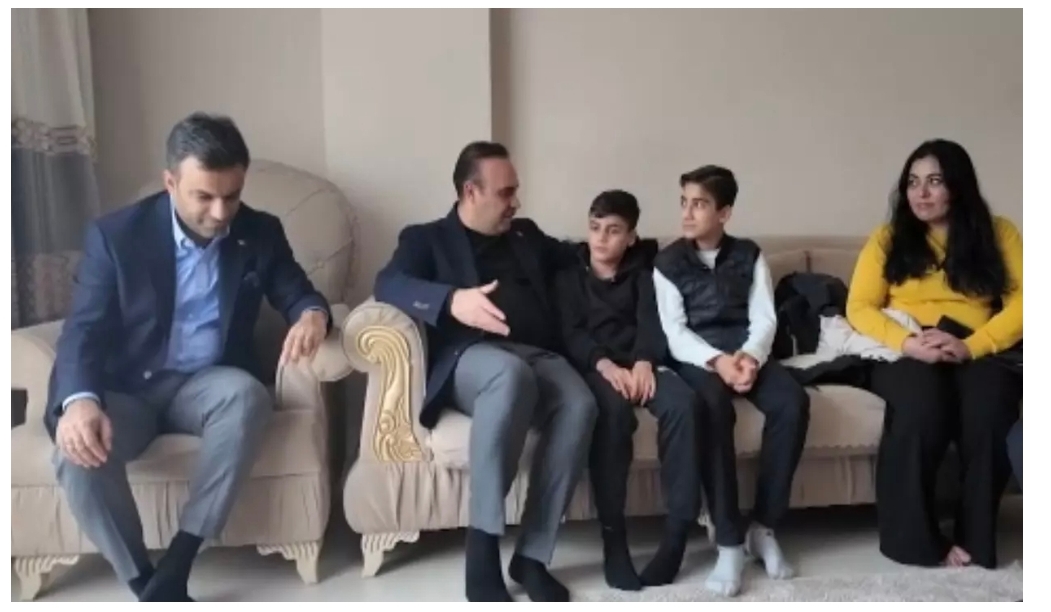 Sanayi ve Teknoloji Bakanı Mehmet Fatih Kacır, Bağcılar Belediye Başkanı Yasin Yıldız ile birlikte Bağcılar'da, yolda buldukları ve içinde 1 milyon 300 bin lira değerinde altın olan çantayı sahibine ulaştıran çocukları ziyaret etti.