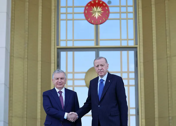 Başkan Recep Tayyip Erdoğan ve Özbekistan Cumhurbaşkanı Şevket Mirziyoyev ortak basın toplantısında açıklamalarda bulunuyor. Başkan Erdoğan "5 milyar dolarlık ticaret hacmi hedefimize kısa sürede ulaşacağımıza inanıyorum." dedi. Mirziyoyev ise "Türkiye sadece kendi bölgesinde ve İslam dünyasında değil tüm dünyada söz sahibi bir ülke" ifadelerini kullandı.