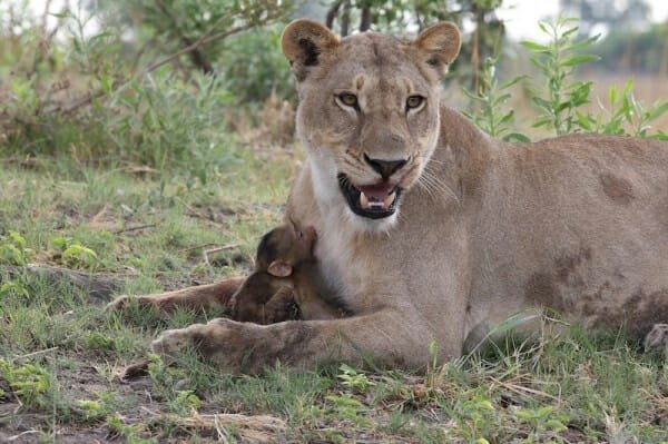 31101Yavru babun, dişi aslanı annesi gibi görüyordu. Muhtemelen dişi aslanın da annelik içgüdüsü devreye girmişti