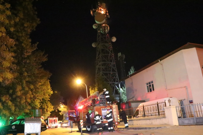 Erzincan İnönü Mahallesi'nde 28 metre yüksekliğindeki radyolink istasyonunda henüz belirlenemeyen bir nedenle yangın çıktı.