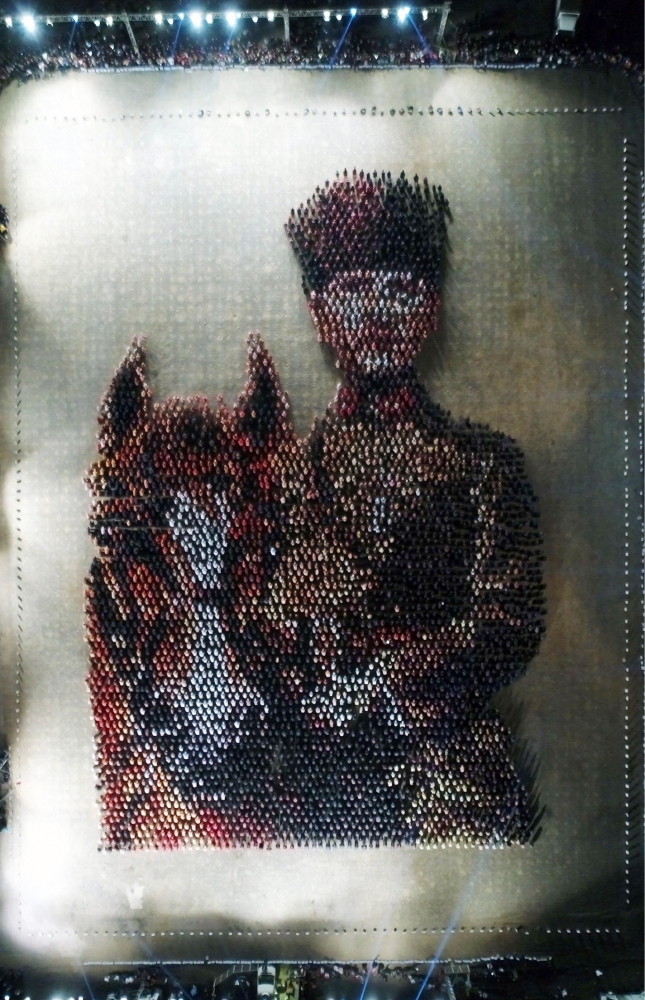Ayrıca, katılımcılar Türk bayrağının ardından koreografi ile Mustafa Kemal Atatürk’ün portresini yaptı. Yaşanan bu anlar saniye saniye insansız hava aracı ile çekilen görüntüler alana kurulan ekrana yansıtıldı.