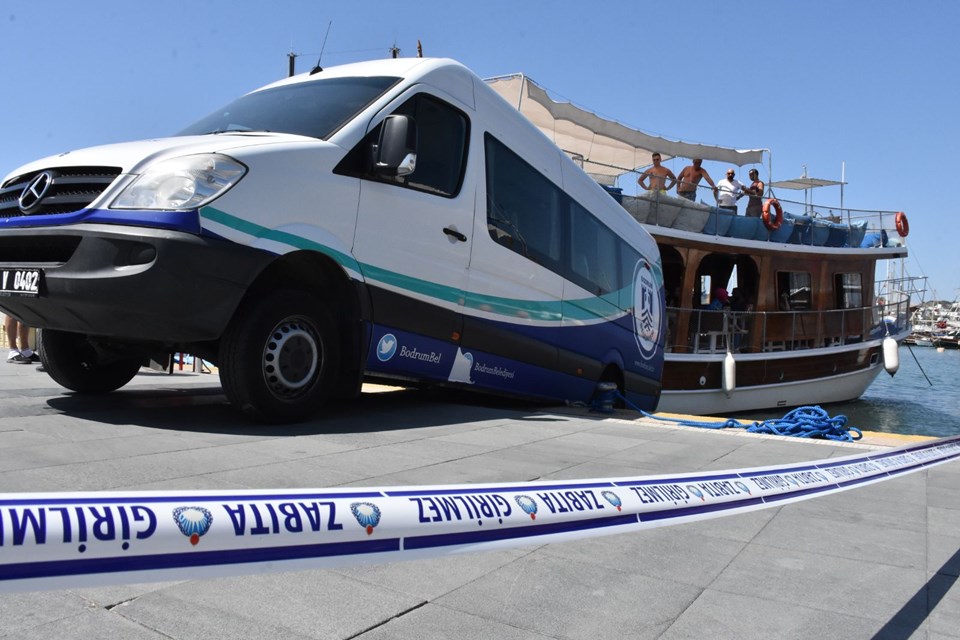 Muğla'nın Bodrum ilçesi belediye meydanında, Sinan Avcıoğlu'nun idaresindeki belediye hizmet minibüsü, meydanda park halindeyken henüz belirlenemeyen nedenle geri kaymaya başladı.